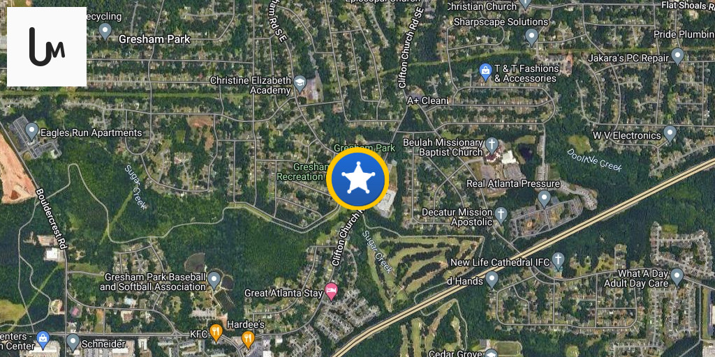 At least 15 police cars are on scene at the BP gas station at the corner of Campbellton Road SW and Honeysuckle Lane South-West